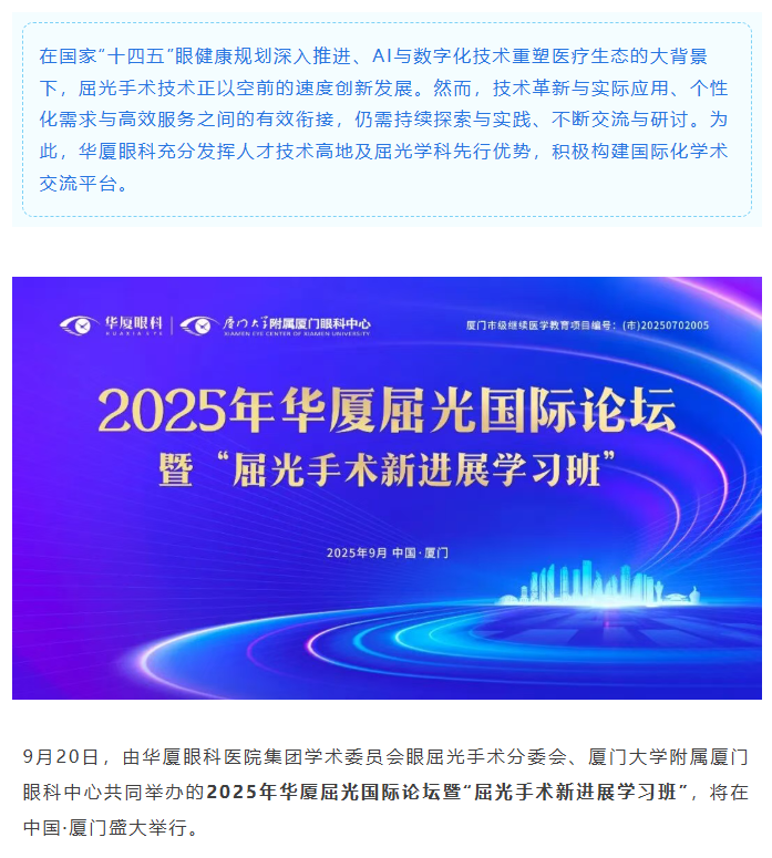 亮点预告 | 2025年新利体育屈光国际论坛9月20日厦门启幕