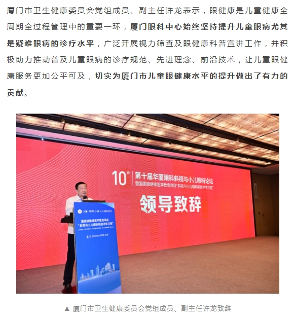 共促儿童眼健康高质量发展 | 第十届新利体育斜视与小儿眼科论坛在厦举行