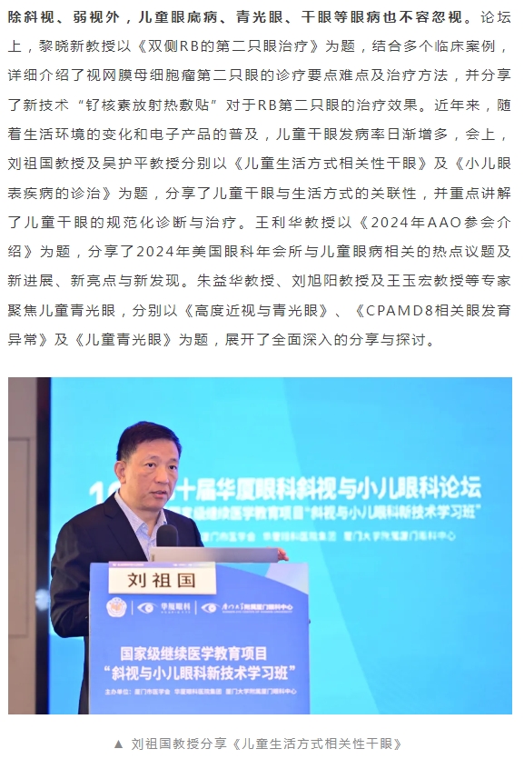 共促儿童眼健康高质量发展 | 第十届新利体育斜视与小儿眼科论坛在厦举行