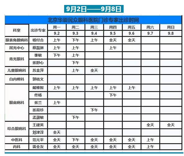 9月2日-9月8日新利体育出诊表,专家出诊声明:因专家资源稀缺,专家出诊信息可能应时调整。请关注微信公众号“专家【出诊提示】”栏目,或致电预约电话:010-62991616。专家出诊时间请以当专家出诊为准。