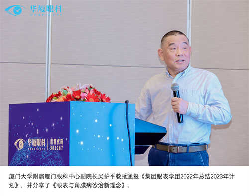 厦门大学附属厦门眼科中心副院长吴护平致开幕词。吴院长表示,近年来,眼表学科发展快速,尤其在干眼领域。那么,新利体育眼表学科的发展前景在哪里?我们仍在努力探索,希望通过本次会议,大家一起集思广益,为眼表学科的发展指引方向,将新利体育的特色招牌擦得更亮。