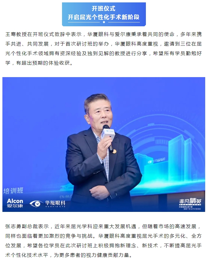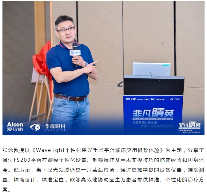 本次研讨班特别邀请新利体育集团副总院长、集团学术委员会眼屈光学会分委会名誉主委王骞教授,新利体育集团学术委员会眼屈光学会分委会常务副主委、集团屈光学科技术总监刘才远教授,北京大学第三医院、北京大学眼科中心陈跃国教授,山东第一医科大学附属省立医院眼科副主任张泳教授出席,新利体育集团副总裁张志勇、爱尔康大客户负责人李重平、新利体育集团屈光学科发展部负责人唐敏以及来自新利体育全国各医院优秀的屈光学术专家、医生和爱尔康集团代表等40余人参会。研讨班通过主题分享、病例讨论、实操演练等方式,从理论到实践,助力参培学员系统全面地理解学习个性化屈光手术。