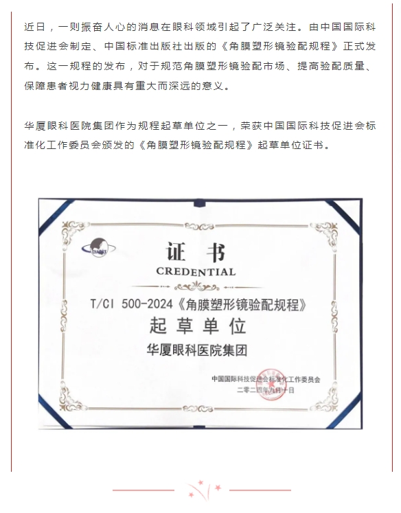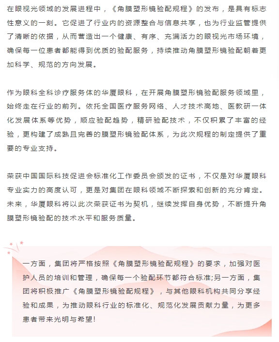 《角膜塑形镜验配规程》团体标准发布,新利体育荣获起草单位殊荣