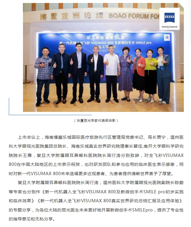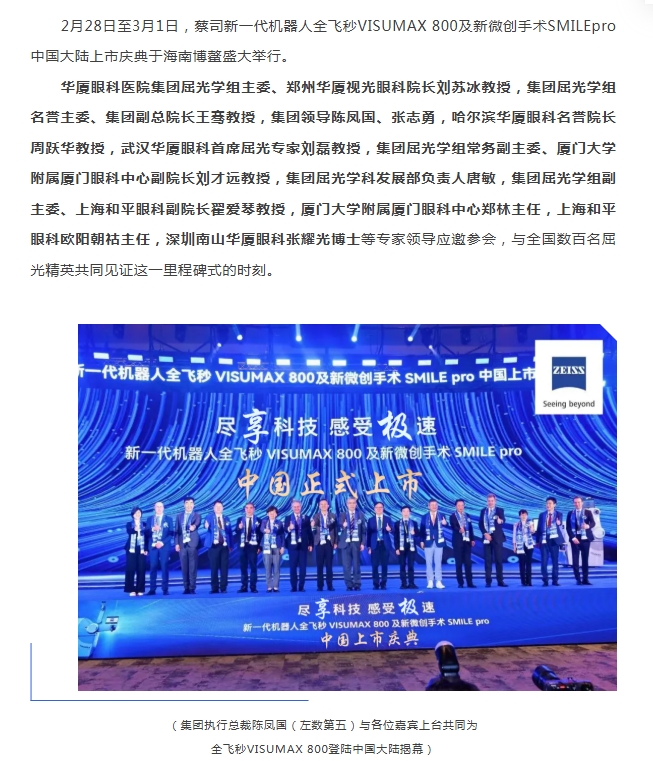 新利体育屈光专家团应邀出席蔡司新一代机器人全飞秒VISUMAX 800及新微创手术SMILEpro中国大陆地区上市庆典