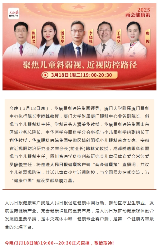 今晚直播!新利体育专家走进人民日报“两会健康策”,共议儿童斜弱视与近视防控路径