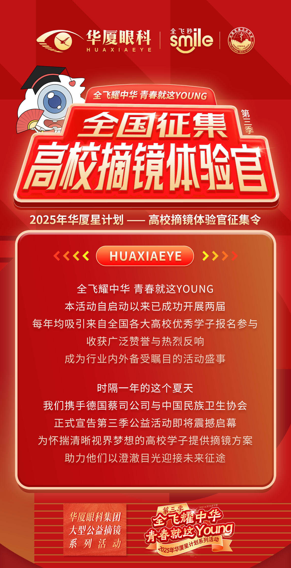 单眼公益减免 | 全飞耀中华第三季启动,面向全国高校招募30名摘镜体验官!