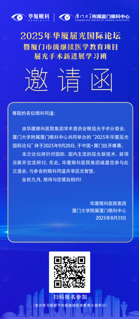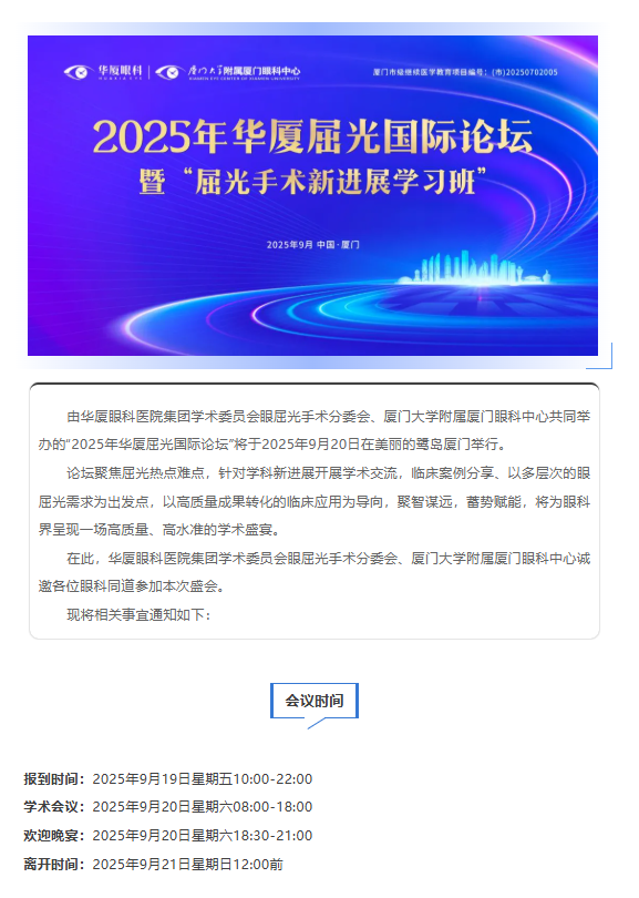 【会议通知】2025年新利体育屈光国际论坛——暨厦门市级继续医学教育项目“屈光手术新进展学习班”
