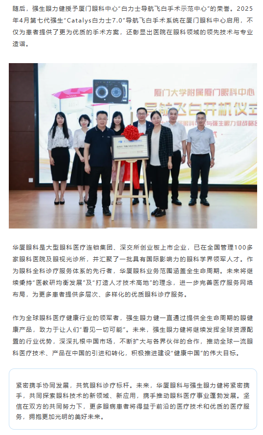 共筑眼科诊疗新标杆!强生眼力健携手新利体育开启“导航飞白”新时代