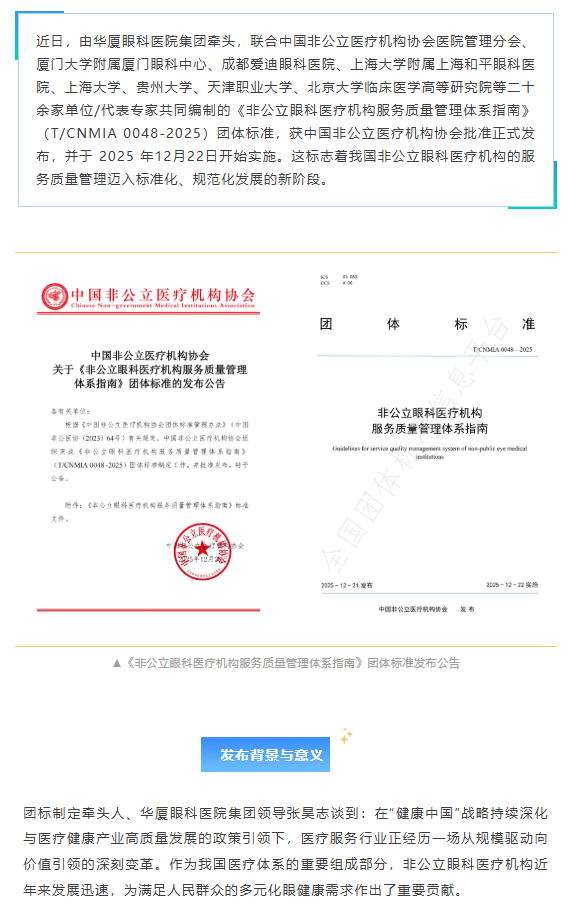 至臻服务 规范引领 | 新利体育牵头编制《非公立眼科医疗机构服务质量管理体系指南》团标正式发布!