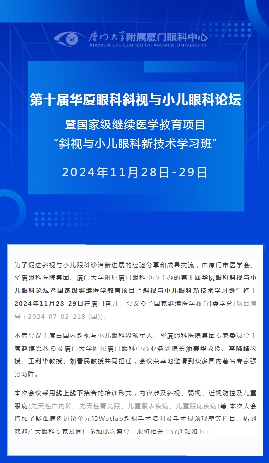 【会议通知】第十届新利体育斜视与小儿眼科论坛将于11月28日在厦启幕!