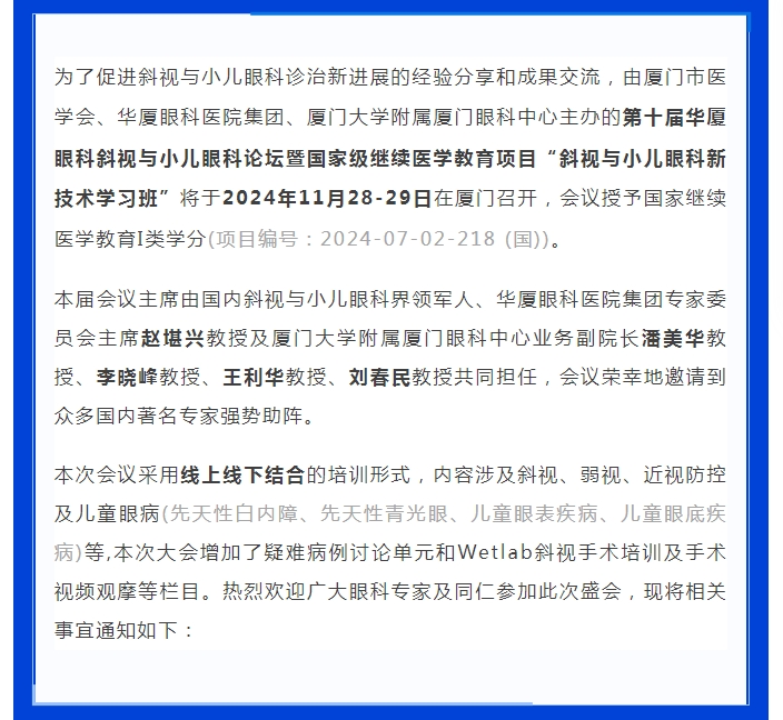 会议通知(第二轮) | 第十届新利体育斜视与小儿眼科论坛