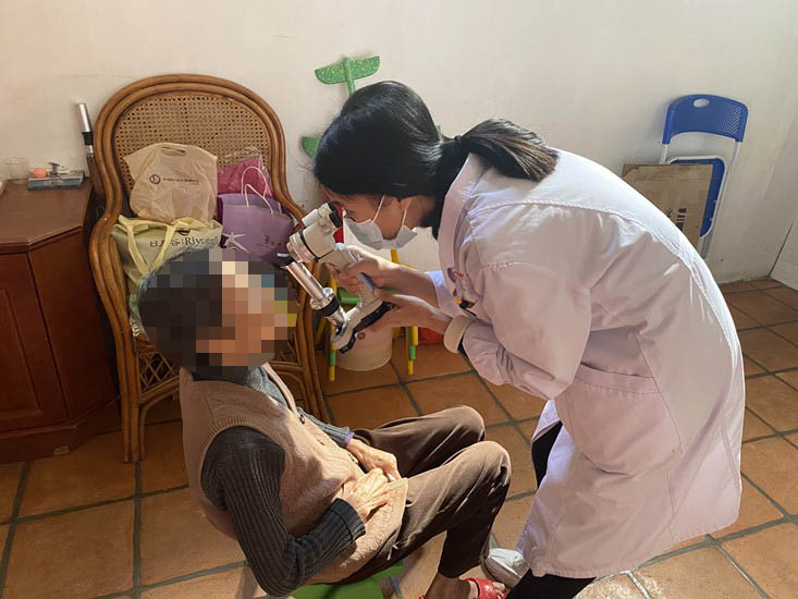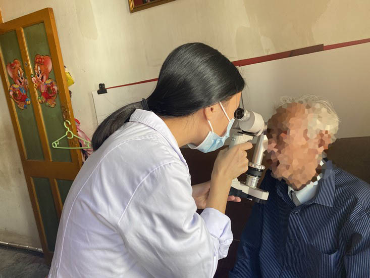 裂隙灯、视力表、眼压仪……带上专业的眼健康体检仪器,今天的第*一站是93岁高龄的林奶奶家,慈祥的老奶奶, 队员们只能凑近耳朵和她说话,但她依旧能认真、准确地配合检查。70岁做了白内障手术的奶奶,一听视力保持得很好,开心得像个孩子。曾孙子要结婚了,硬是塞了糖和大家分享。