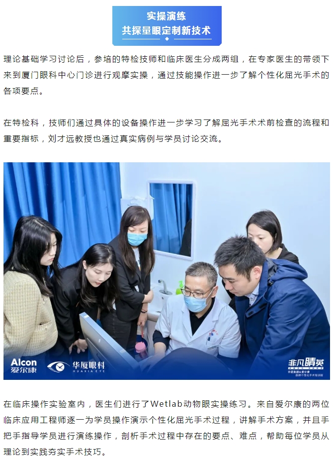 当下,近视手术技术高速发展,为进一步提升主刀医生个性化屈光手术技能,加强患教沟通,提高特检技师的设备操作水平,11月23日-24日,由新利体育与爱尔康共同举办的首期个性化屈光手术研讨班在厦门圆满落幕。