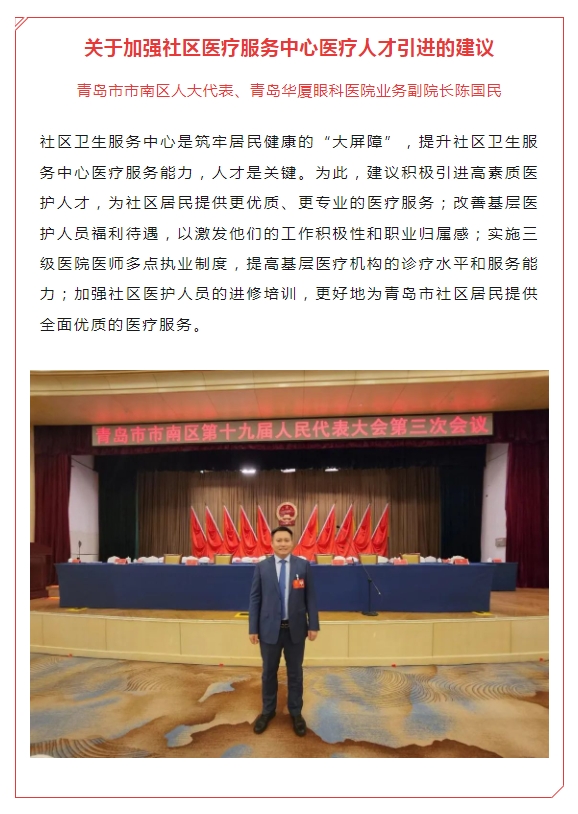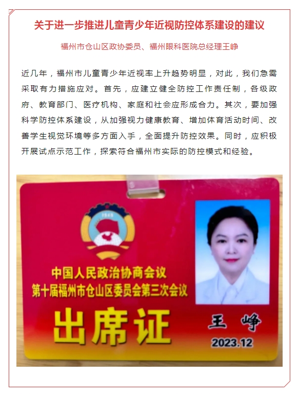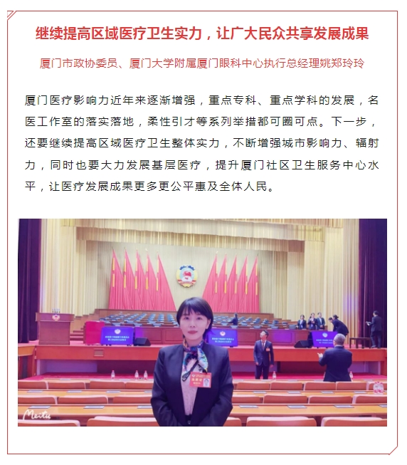 除此之外,镇江市人大代表、镇江康复眼科医院执行董事丁旭辉,厦门市思明区政协委员、厦门大学附属厦门眼科中心副总经理赖玮玲,荆州市沙市区政协委员、荆州新利体育总经理王海波等代表委员也积极参会,履职尽责。