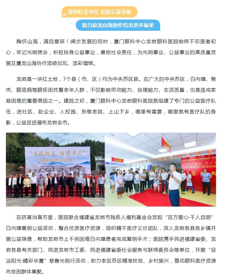 厦门眼科中心龙岩分院助推厦龙山海协作,获两地官媒头版报道点赞!
