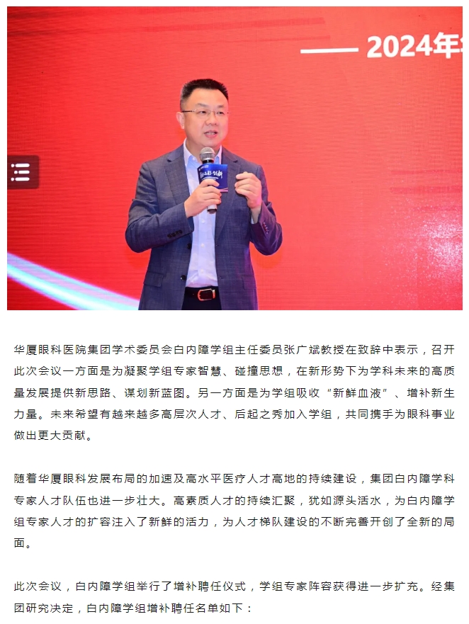 新利体育集团白内障学科发展部陈国雄总监带来《白内障学科2024工作计划》
