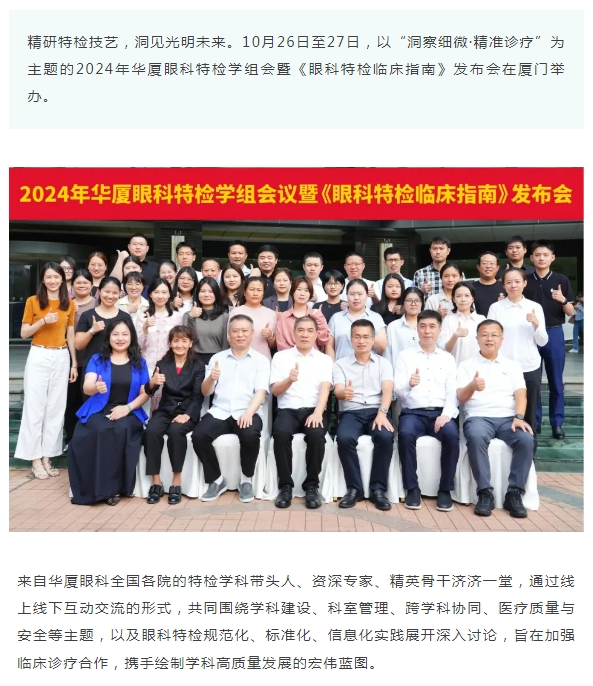 洞察细微·精准诊疗 | 2024年新利体育特检学组会暨《眼科特检临床指南》发布会在厦举办