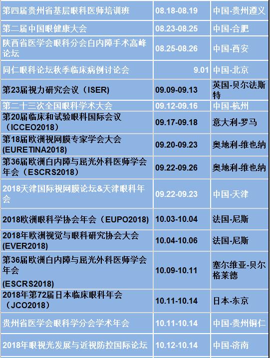 新利体育行业资讯:2018年全国内外出名眼科年会日程已出炉。
